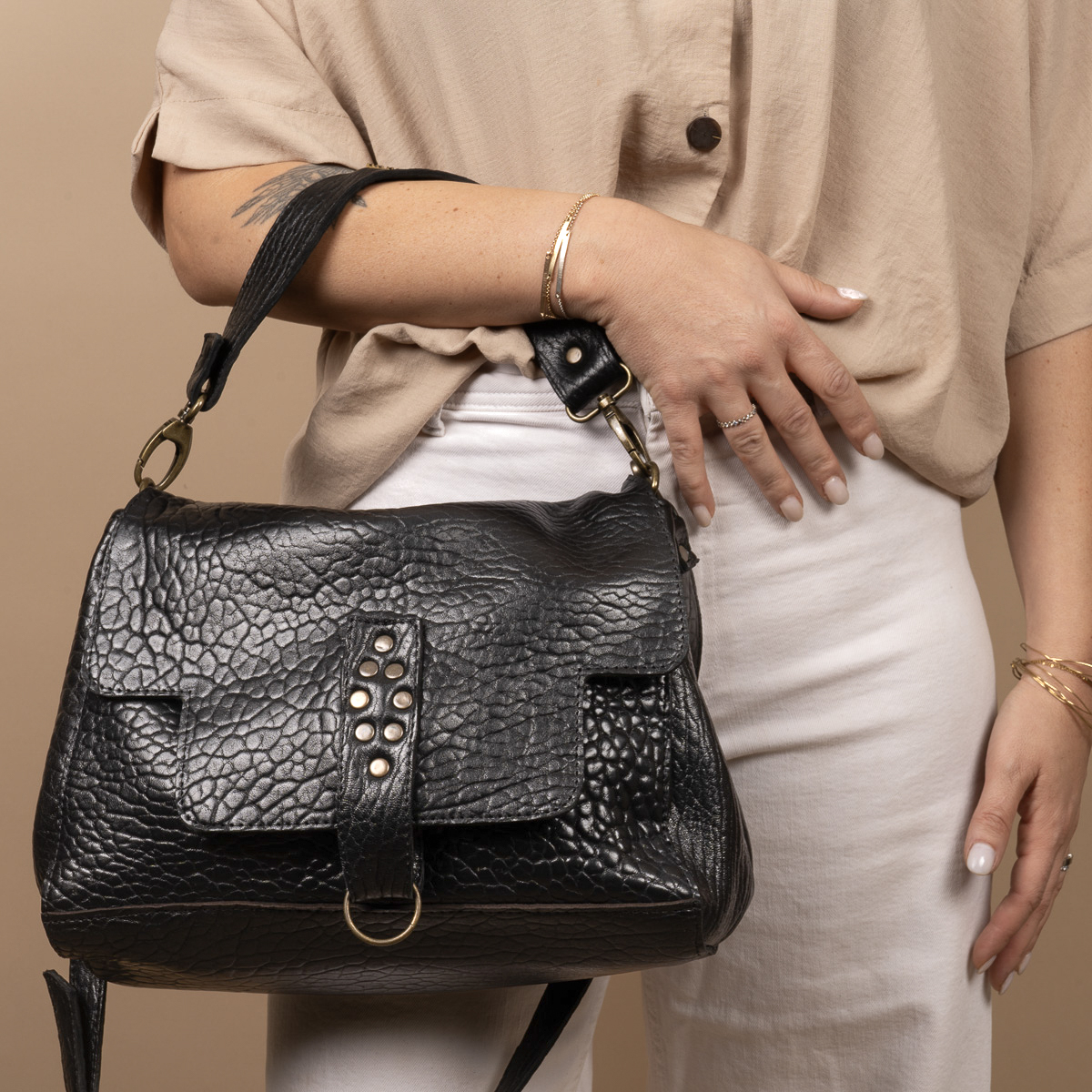 | Caractéristiques | Anse main et anse bandoulière réglable • Rabat avec pression aimantée • Poche intérieure avec fermeture éclair • Fermeture du sac par pression aimantée |